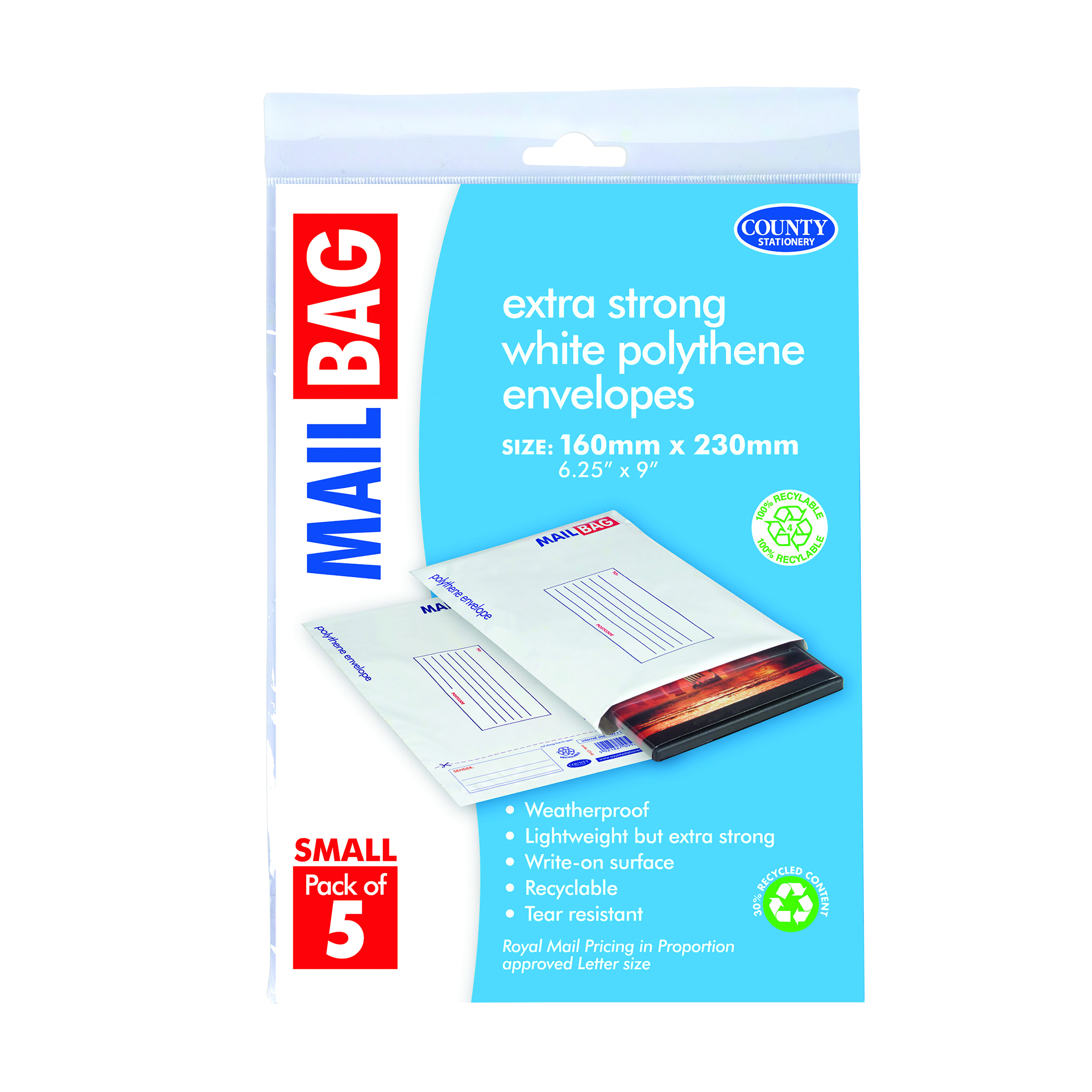 County Stationery Mail Bag Polythene Envelopes x5 White Small 160x230mm (Pack of 10) C260