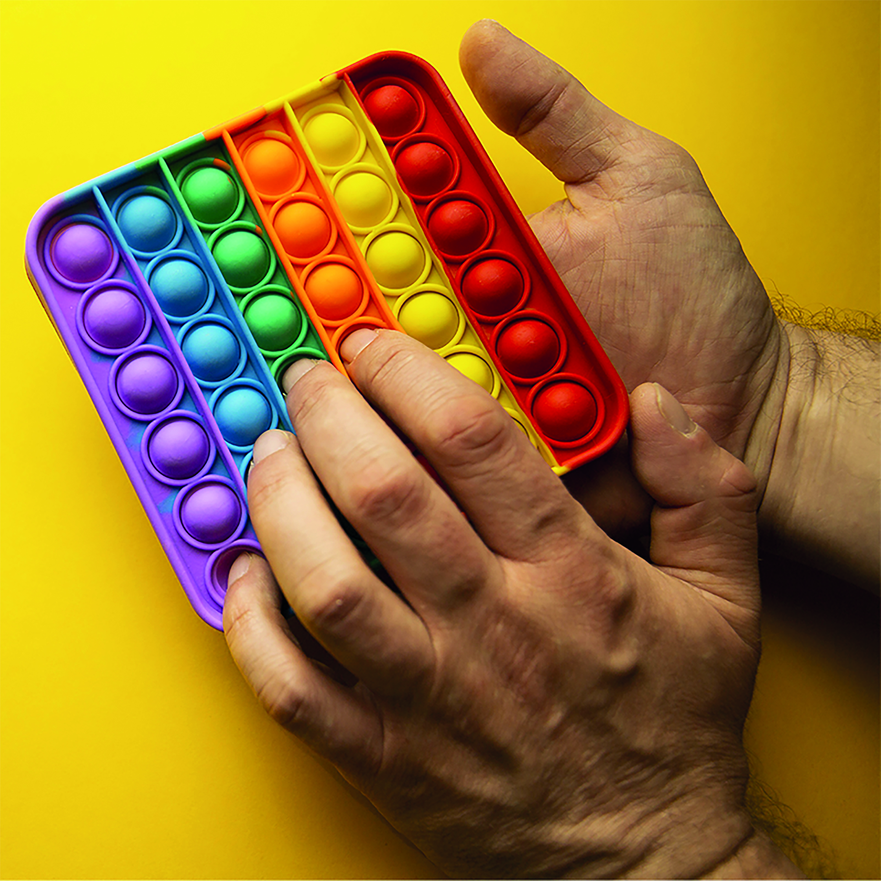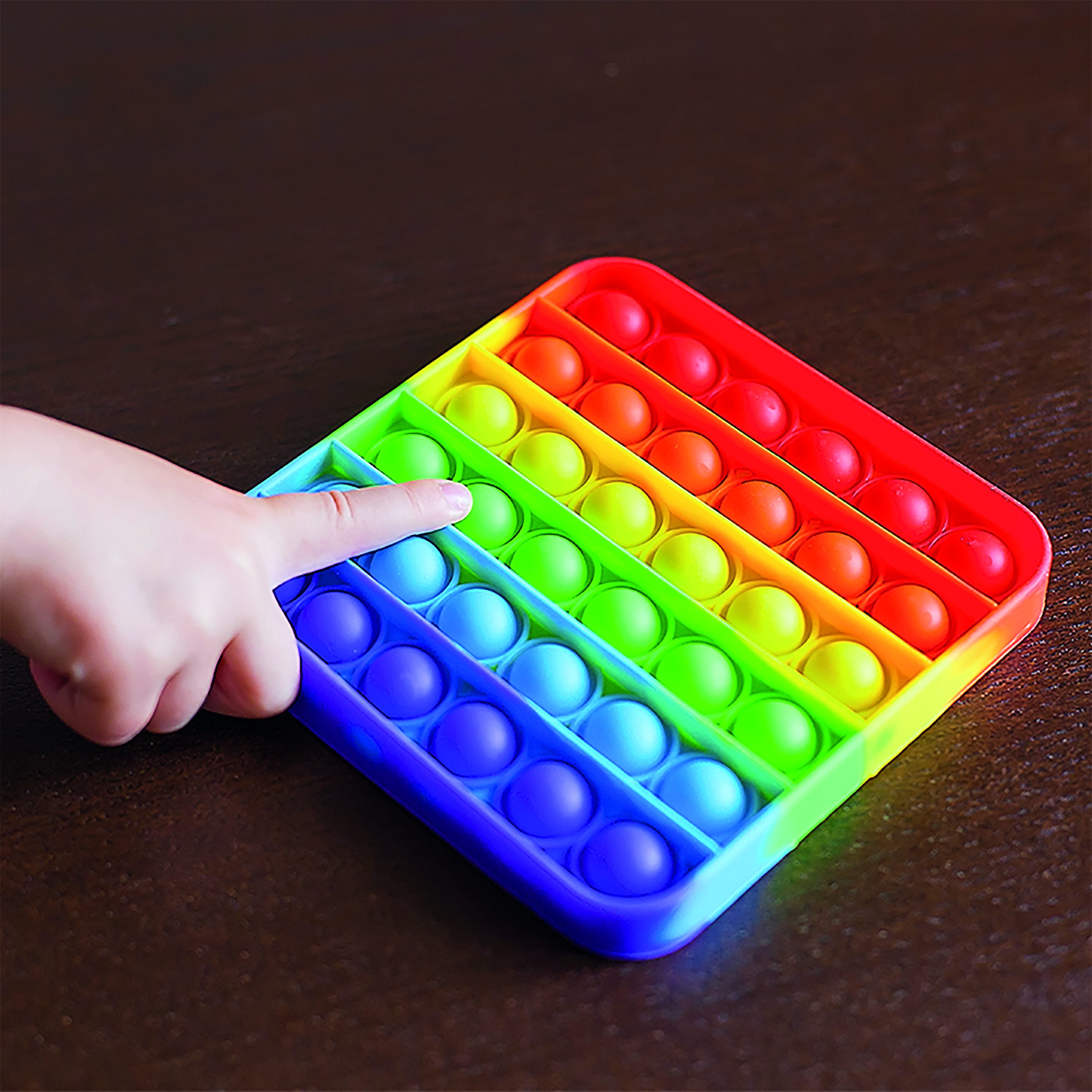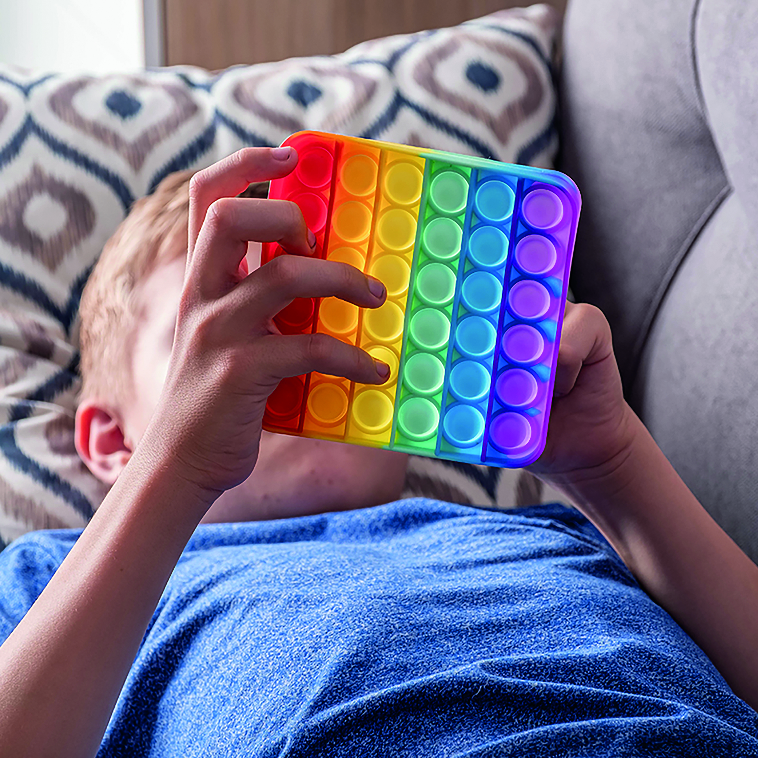 This multicoloured Pop Fidget Pad is the perfect fidget toy for those who loved popping bubble wrap as a child. Perfect size for travelling or for use at home. Provides a satisfying sensory and tactile experience. Make patterns, play games or just pop for fun.
